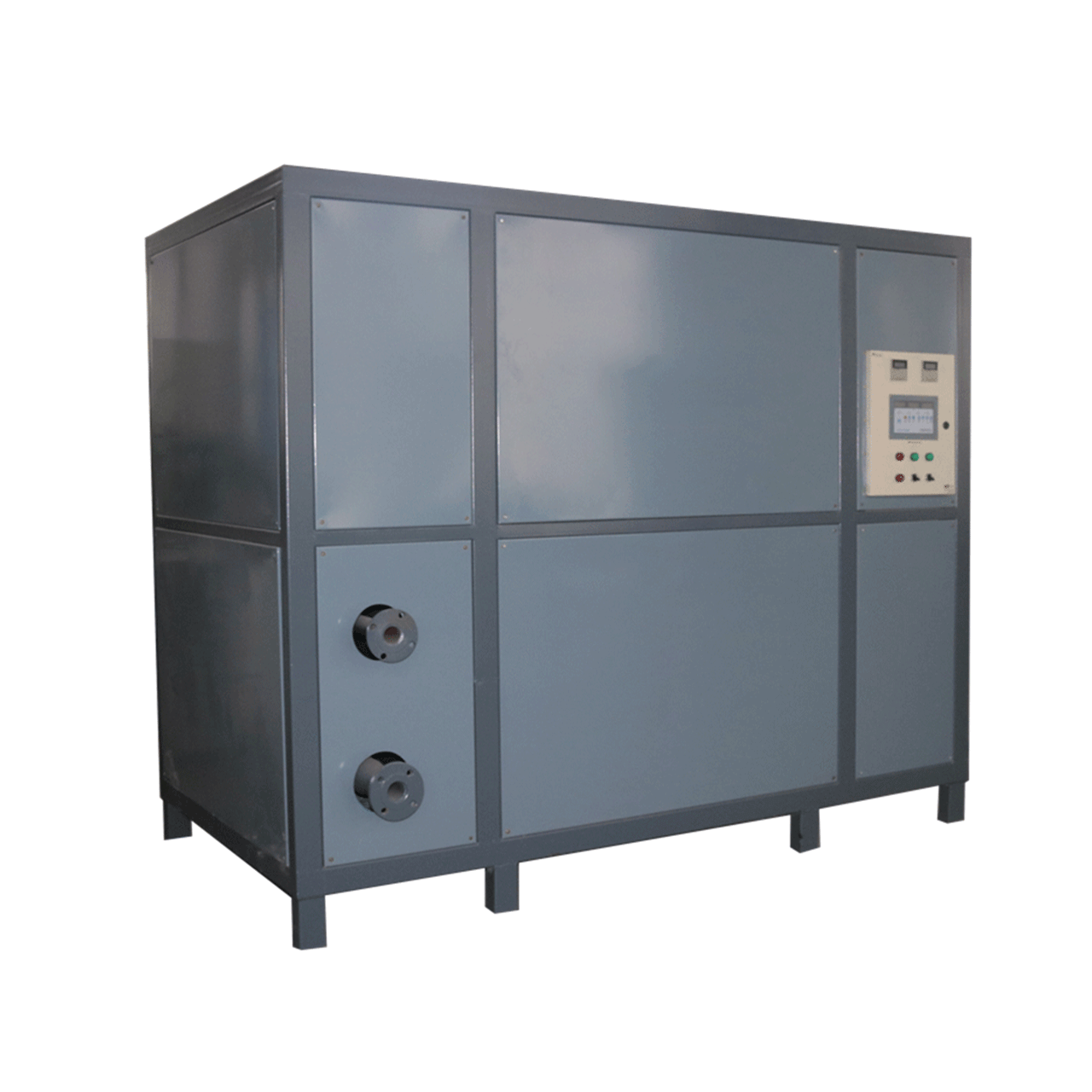該燃氣導熱油加熱器,由較先進的程序控制器控制,能實現(xiàn)正常燃燒所必需的各種功能,能在正常狀態(tài)、事故狀態(tài)及非常情況下,自動實施保護性報警,配以相應的液位控制器、壓力控制器、溫度控制器,實現(xiàn)進出口壓力指示、進出口溫度指示,保證熱載體溫度在正常范圍內(nèi)波動。